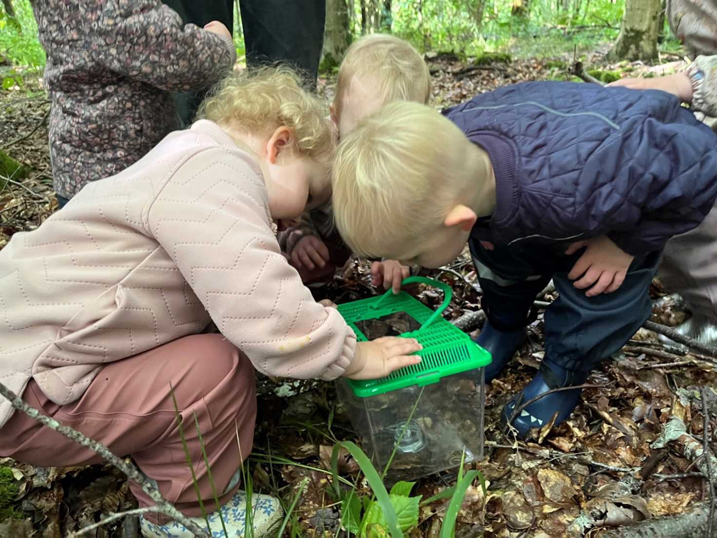 - Vi vægter at opholde os meget i naturen, det giver frihed og ro til fordybelse, stimulerer sanserne, nysgerrigheden, fantasien og udvikler børnenes motoriske færdigheder.